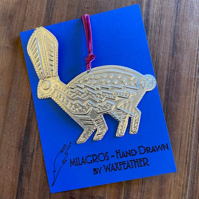 Individually hand-drawn and handcrafted, each lightweight aluminum milagro is one-of-a-kind! Milagros have a long history, frequently used as charms to promote health, well-being, luck or protection. Made right here in Tucson by Zoë of Waxfeather, these feature designs inspired by traditional iconography, the Sonoran Desert's unique wildlife, and the human body.