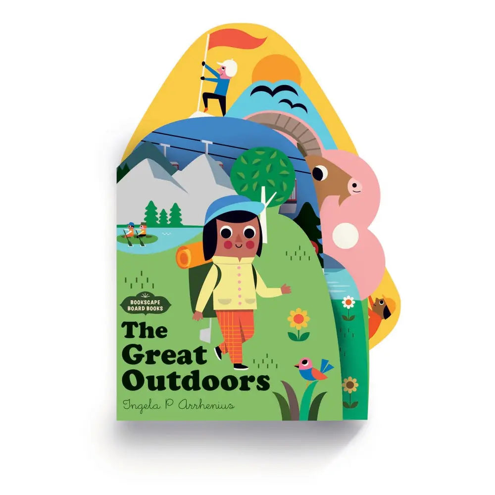 Gear up for baby's first wilderness adventure with this adorable board book all about the great outdoors! Hike beside mountain lakes, pedal down rocky hillsides, and swoop across snowy ski slopes in this one-of-a-kind board book by celebrated illustrator Ingela P Arrhenius. Each uniquely shaped page overlaps with the next to create a complete landscape when closed—and an immersive world to explore when open. Simple text and vibrant illustrations introduce babies and toddlers to the many ways of enjoying time in nature. Delightfully petite, Bookscape Board Books' chunkiness and unique layers give them a tactile, toylike quality that begs to be picked up—making each book in the series a memorable and irresistible gift.
