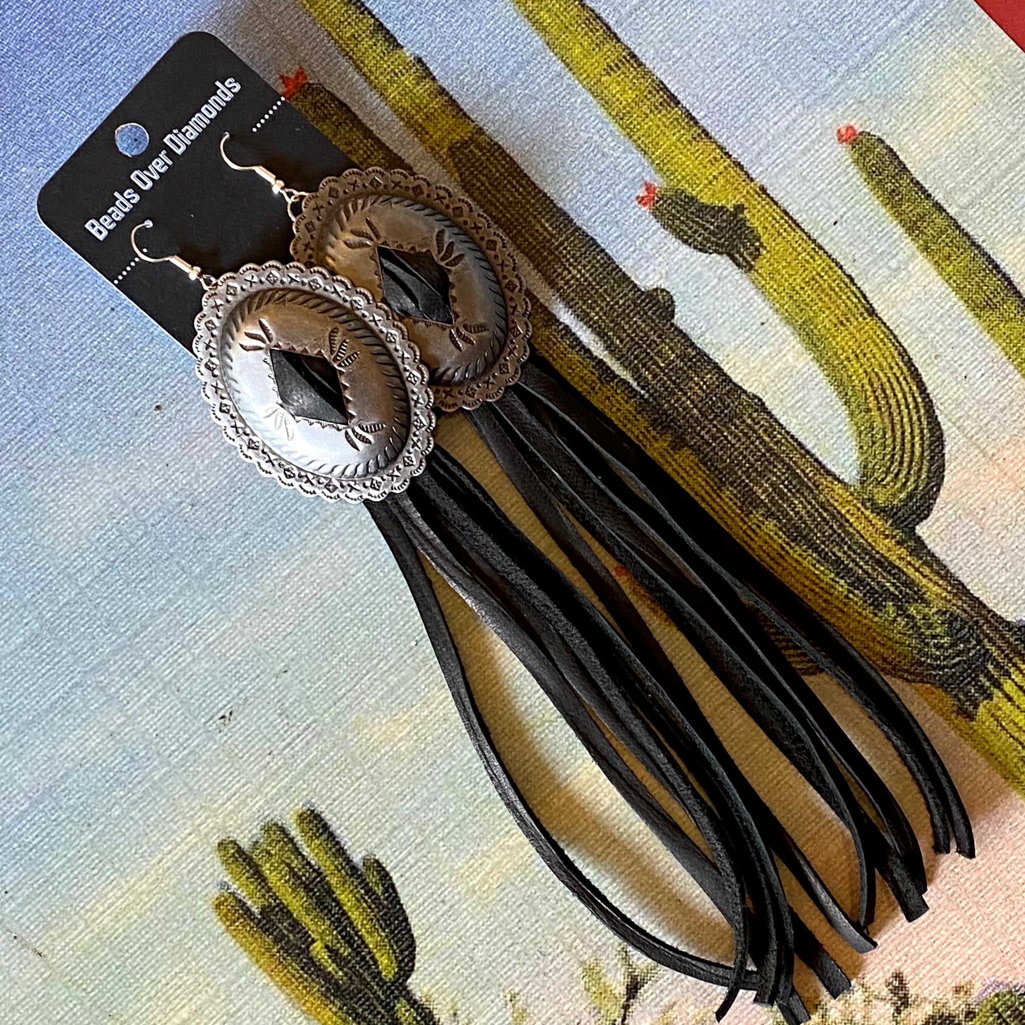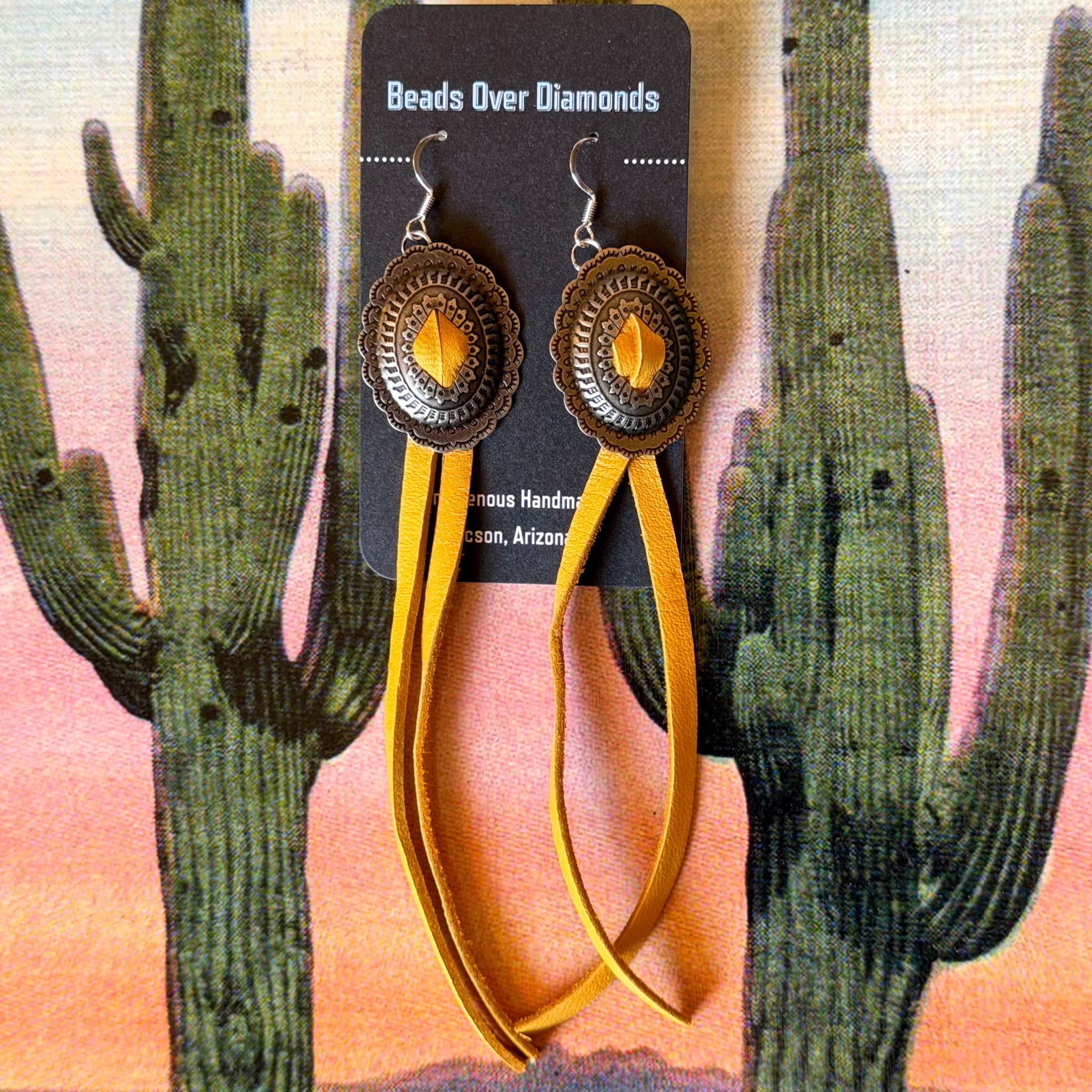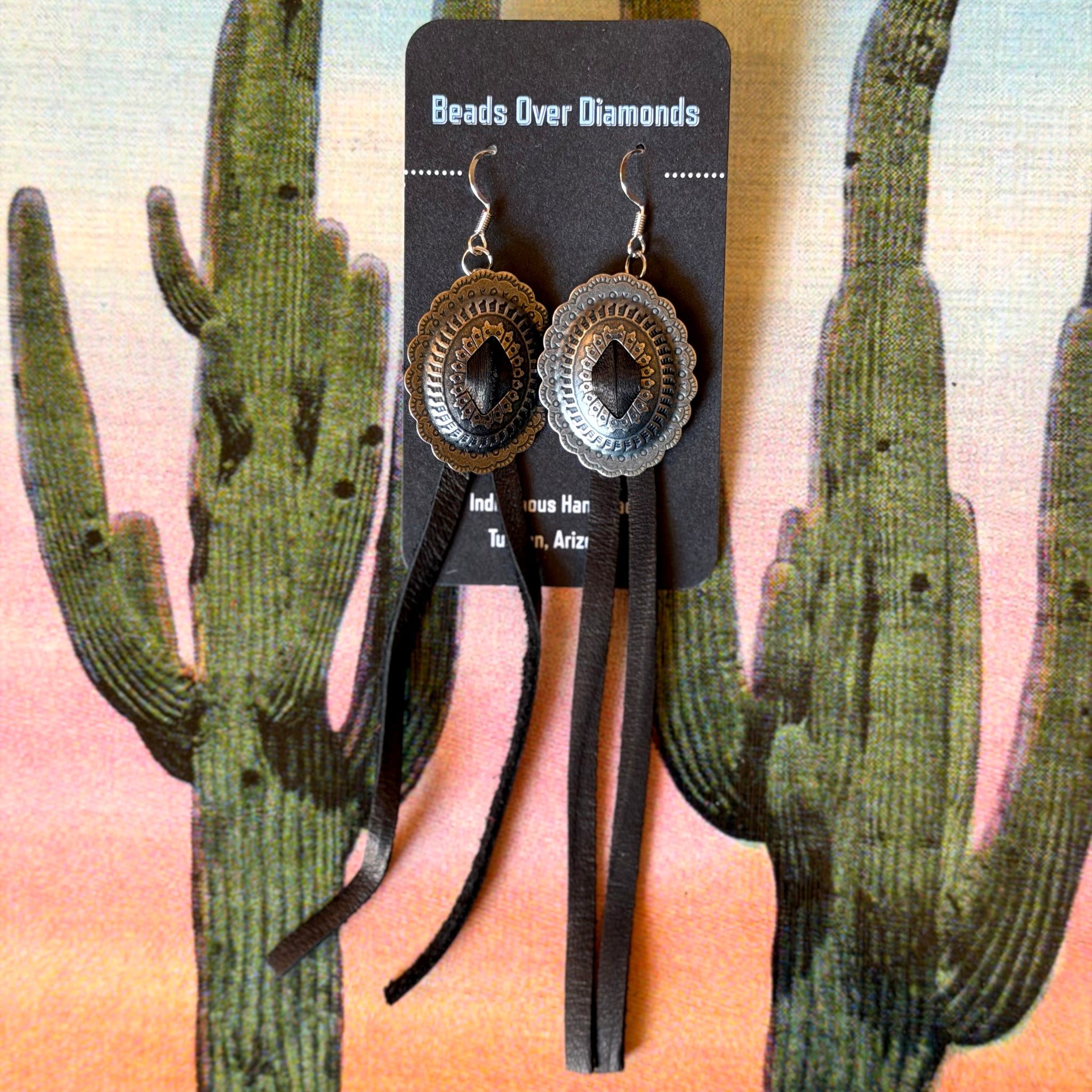 Concho and Leather Earrings by Beads Over Diamonds
