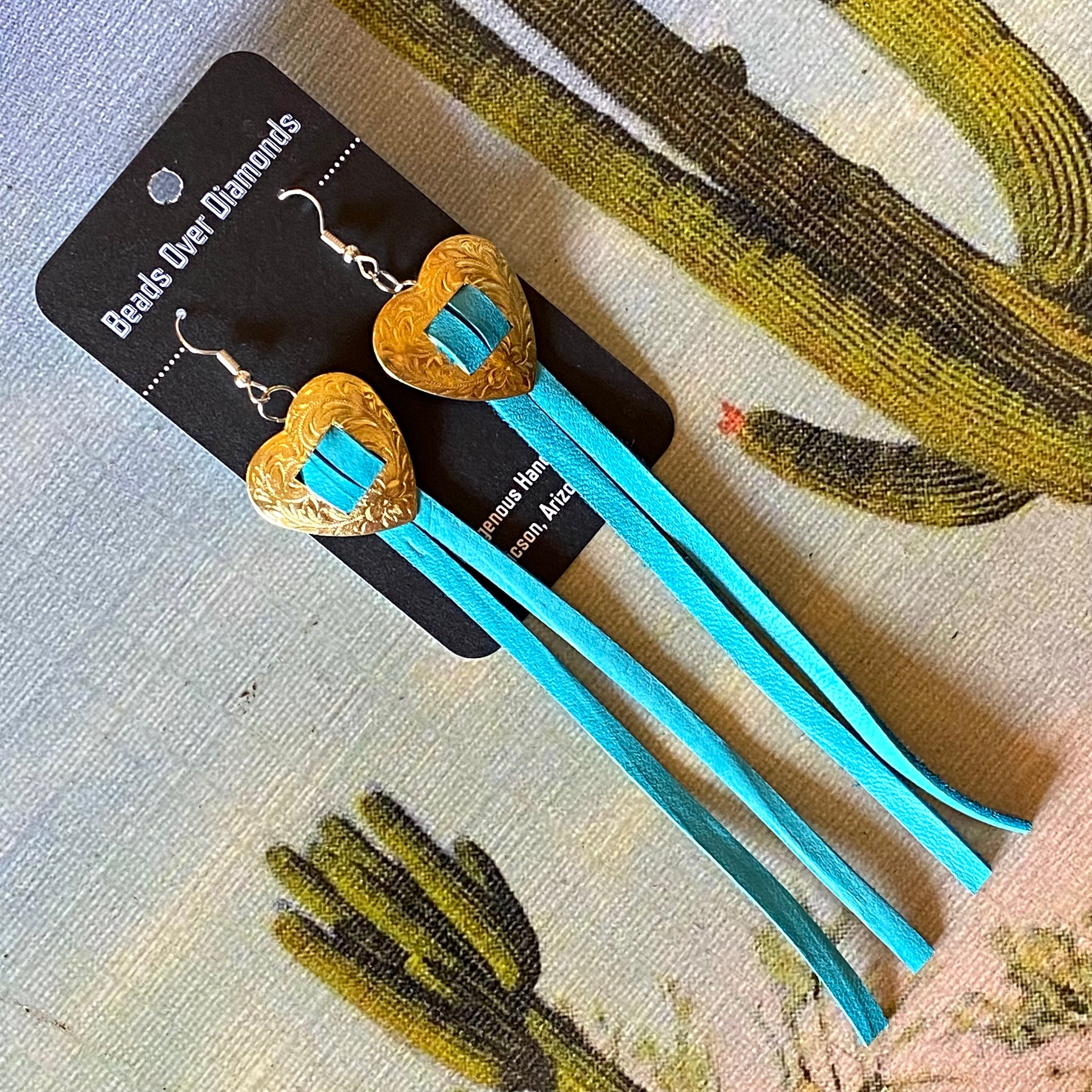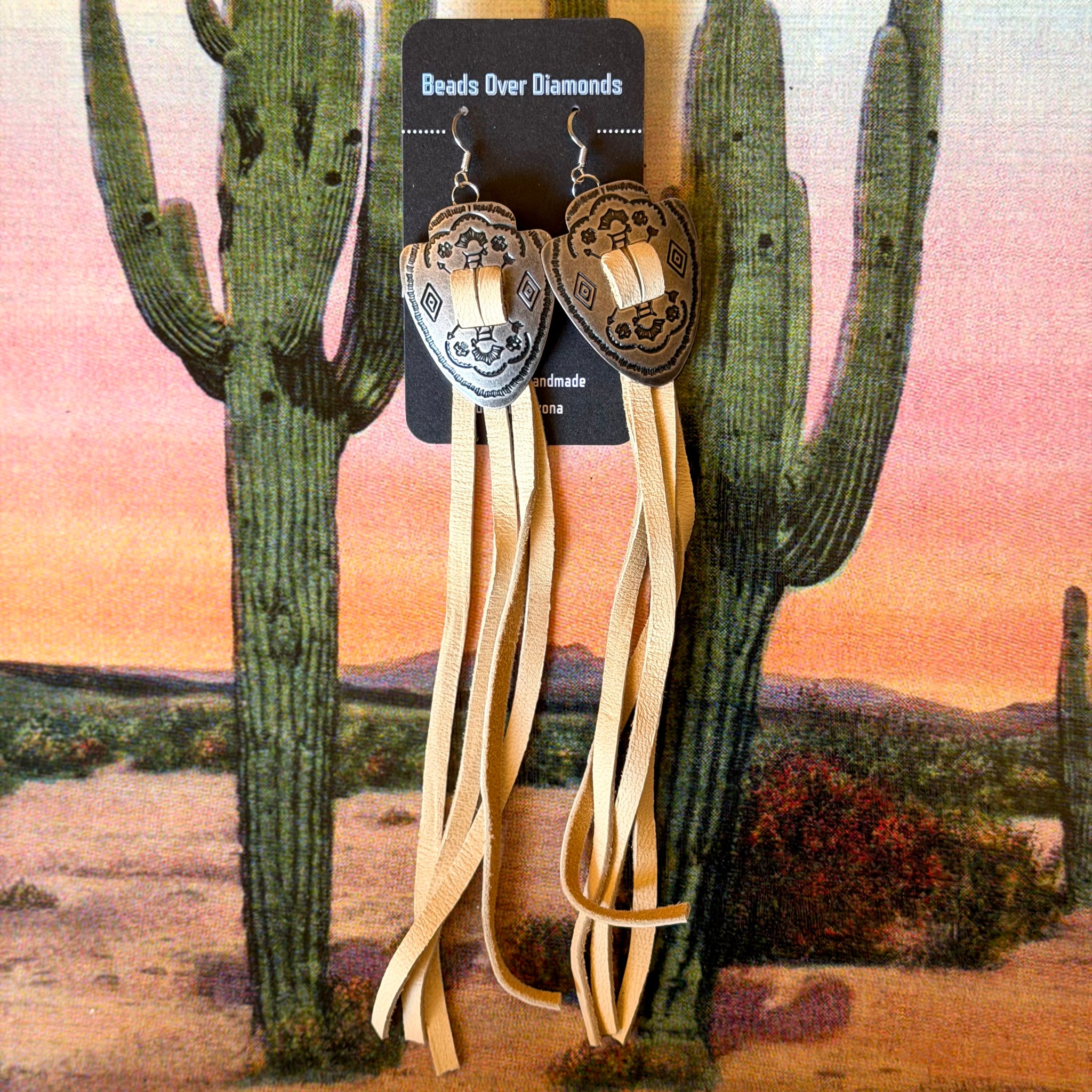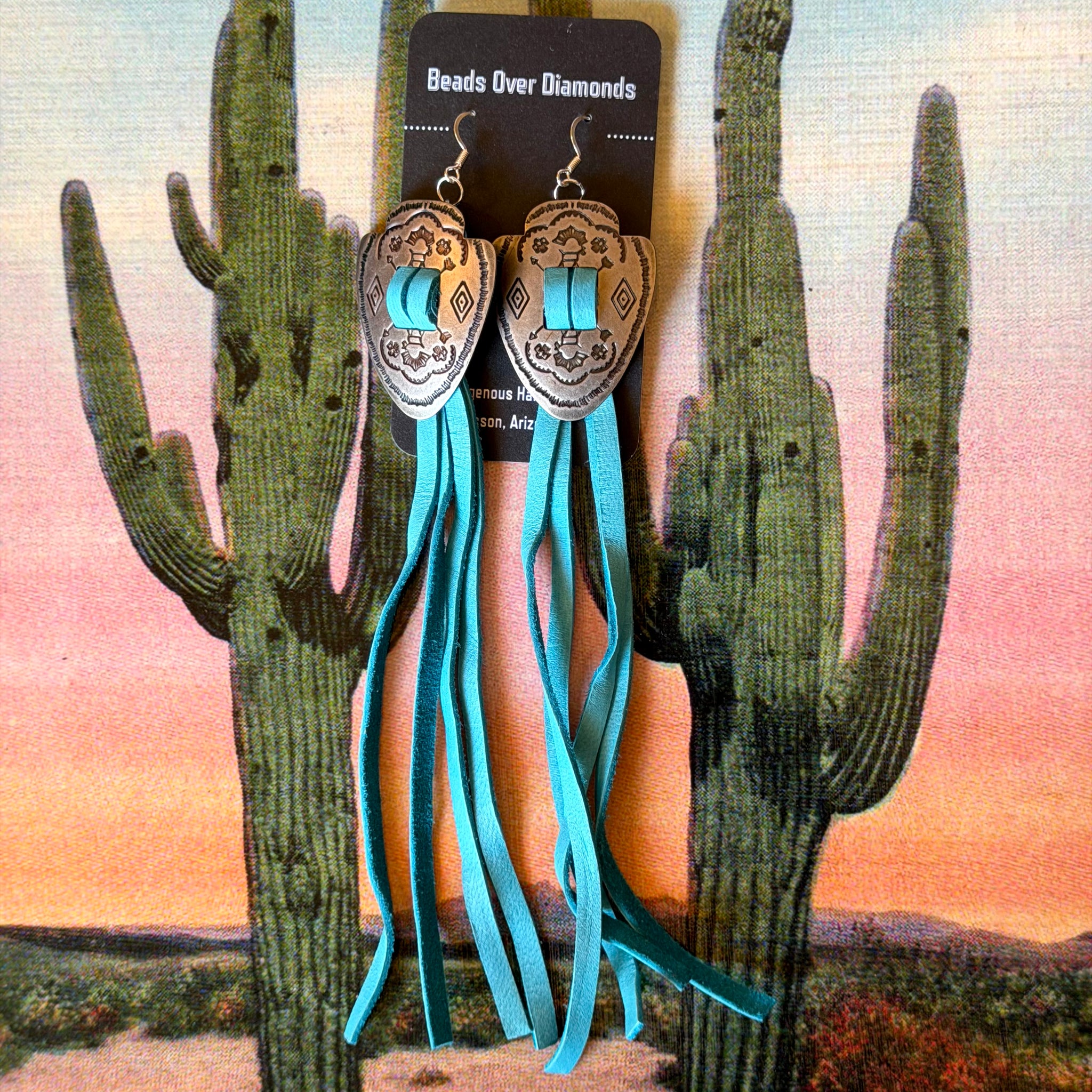 Concho and Leather Earrings by Beads Over Diamonds