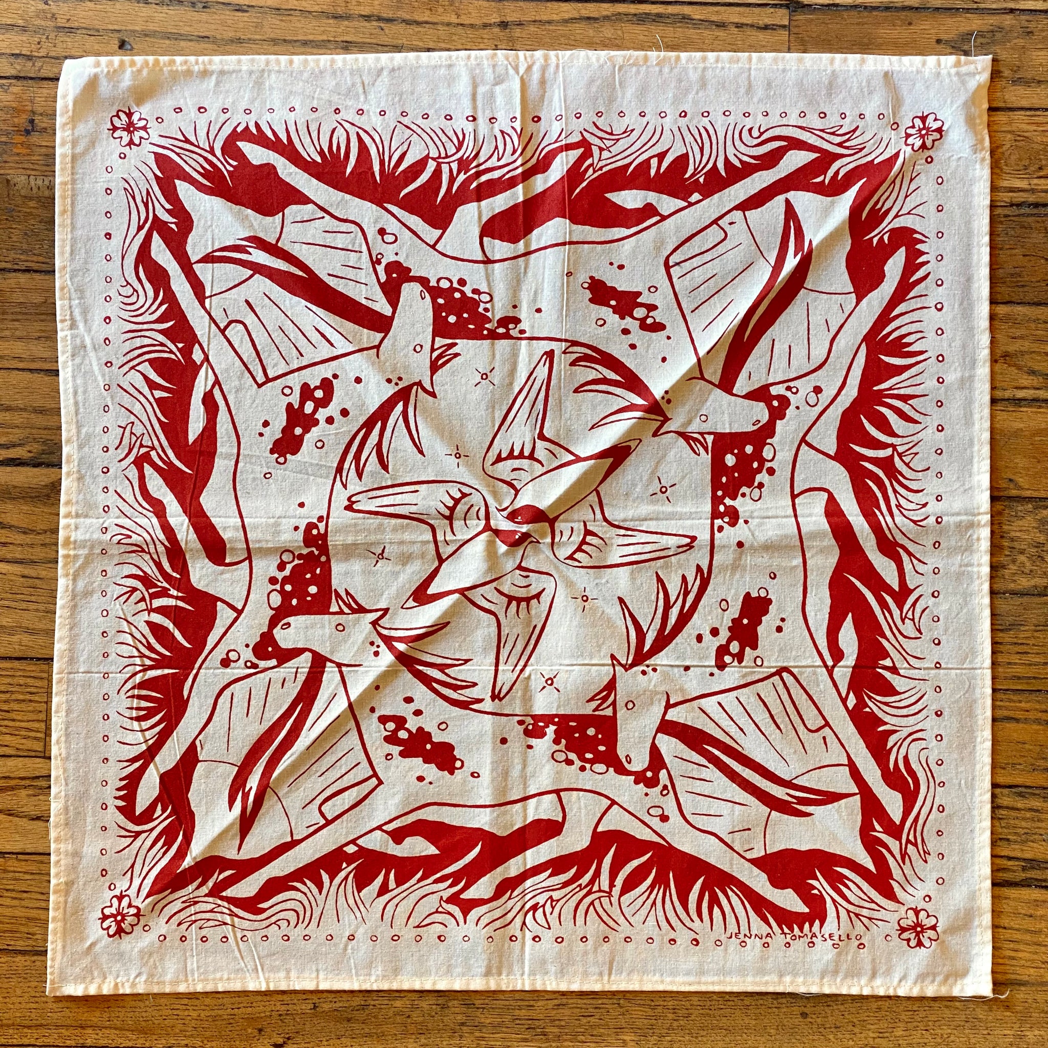 Gorgeous bandanas inspired by the Sonoran desert! Screen printed here in Tucson, each bandana features a different design by local artist Jenna Tomasello, originally painted in acrylic paint on paper. The cotton canvas bandannas measure 22"x22", sewn by the fair trade, women’s co-op, DouglaPrietaWorks, in Agua Prieta, Sonora.