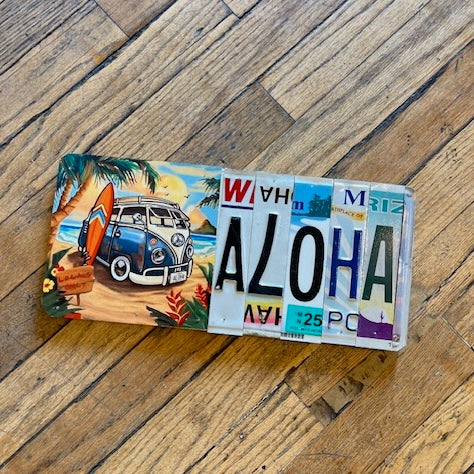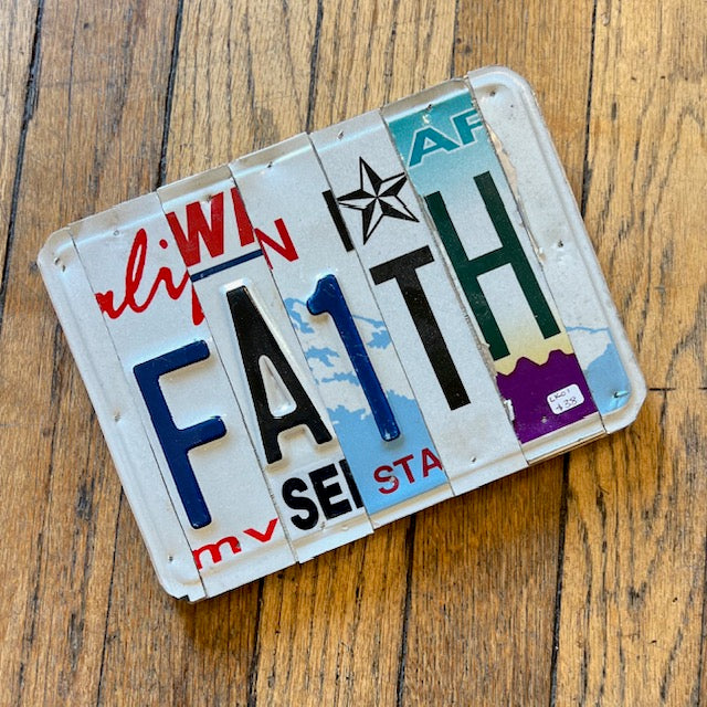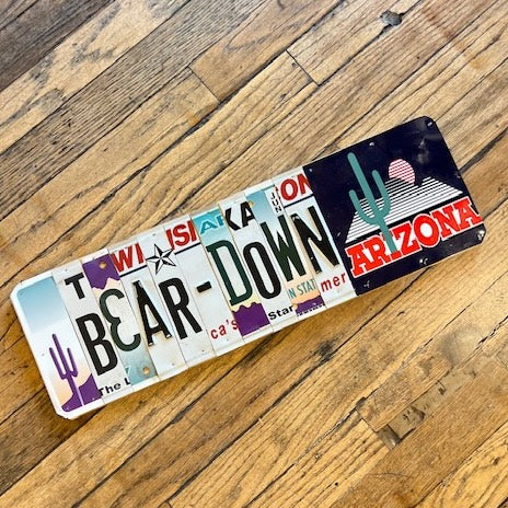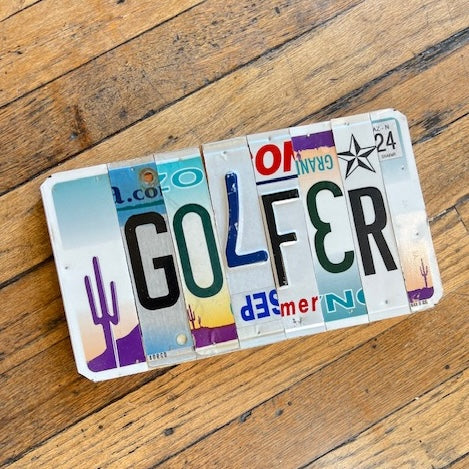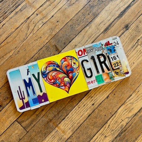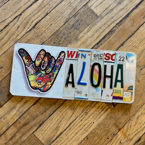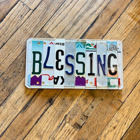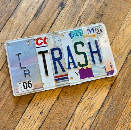 Need a sign to advertise your favorite college team? A greeting? A message of kindness? These one-of-a-kind signs are for you! Levi of the Lost Highway Sign Company handcrafts these unique signs using old license plates on a backing of reclaimed wood. In addition, pop tabs are repurposed as hooks for easy hanging, meaning all the materials used are reclaimed!