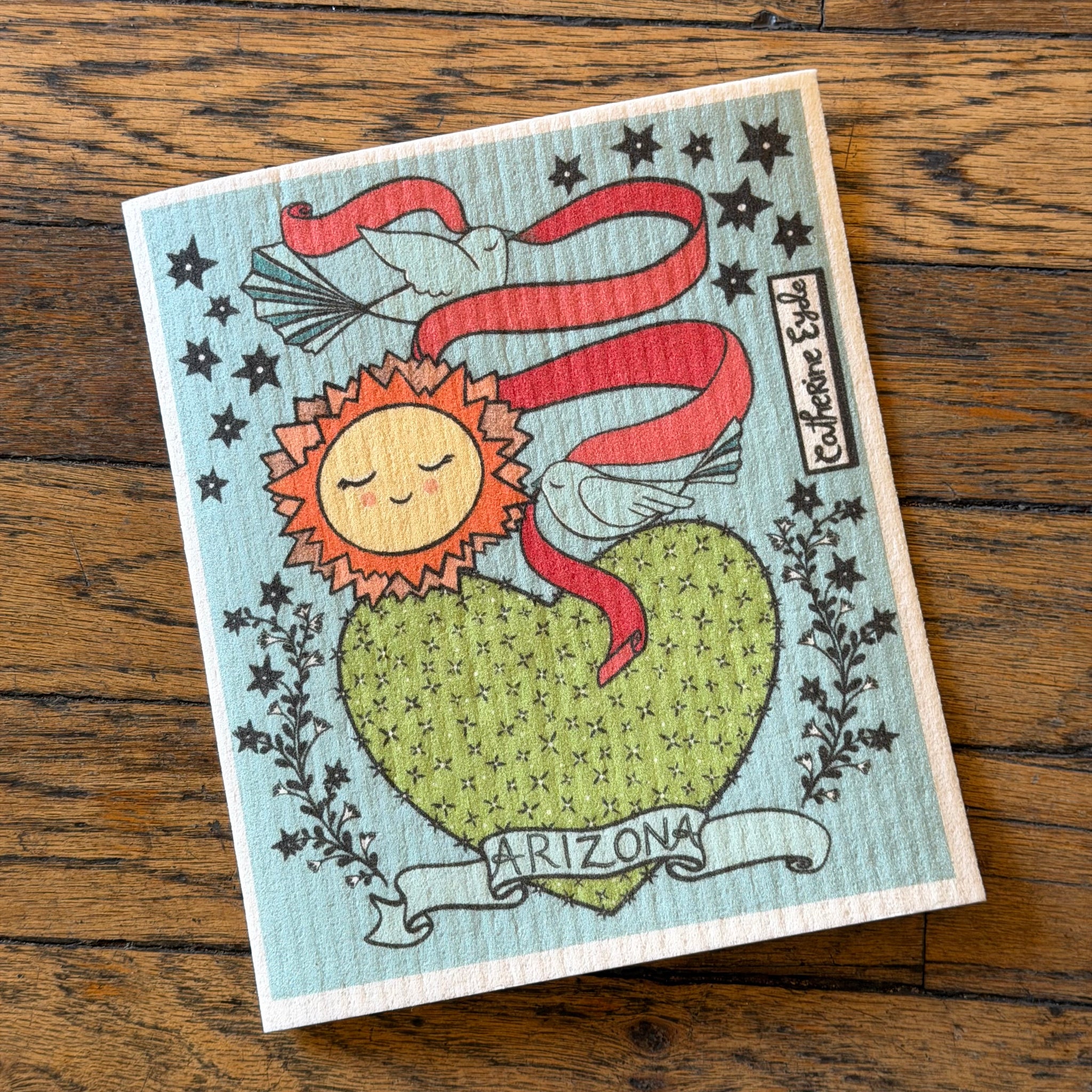 Featuring adorable artwork by local artist Catherine Eyde, these sponge cloths are a sustainable alternative to sponges, washcloths and paper towels. Made from cotton and plant based fibers, they look and feel like thick paper but are highly absorbent and pliable. 1 dish sponge is an equivalent to 17 full rolls of paper towels. 100% natural, antibacterial, and fully compostable!