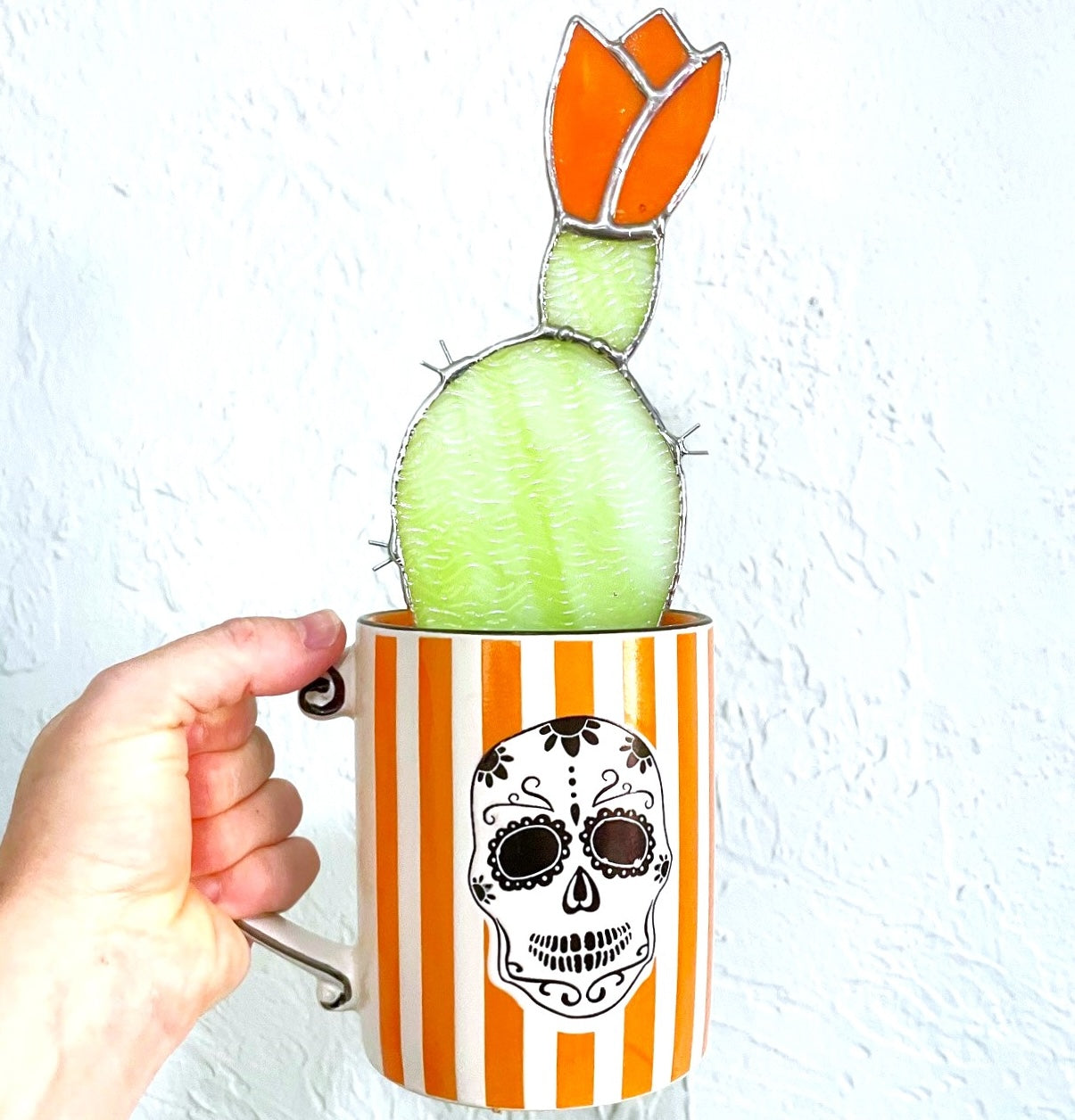 No-mess cactus you don't have to water and, barring gravitational mishap, will never die! These one-of-a-kind stained glass cacti are handmade locally by Alex of Goodness Glass, using recycled and/or upcycled components. A great addition to any room, and the perfect gift for the plant lover in your life that just can't quite seem to keep them around.