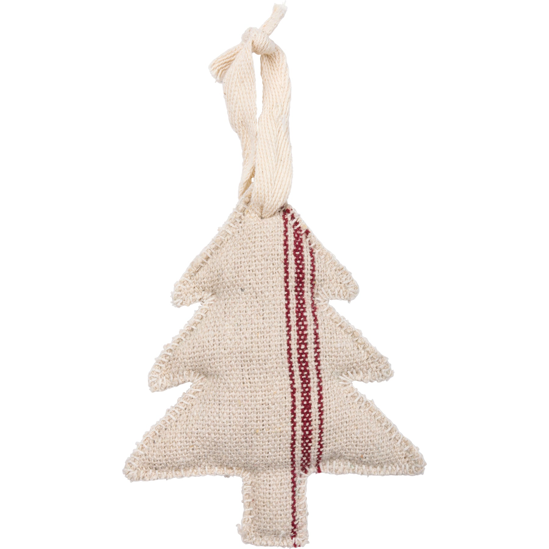 Farmhouse style meets Christmas charm with this fabric tree 7 star-shaped ornament, featuring striped accents and a top loop for easy hanging.